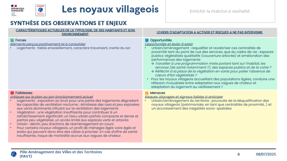 Les résultats attendus incluent la mise en place d’une démarche collaborative qui permettra aux acteurs locaux de co-construire des solutions d’adaptation efficaces. Cette démarche favorisera l’implication des collectivités, des citoyens et des experts, garantissant que les réponses apportées soient pertinentes et adaptées aux besoins des populations.